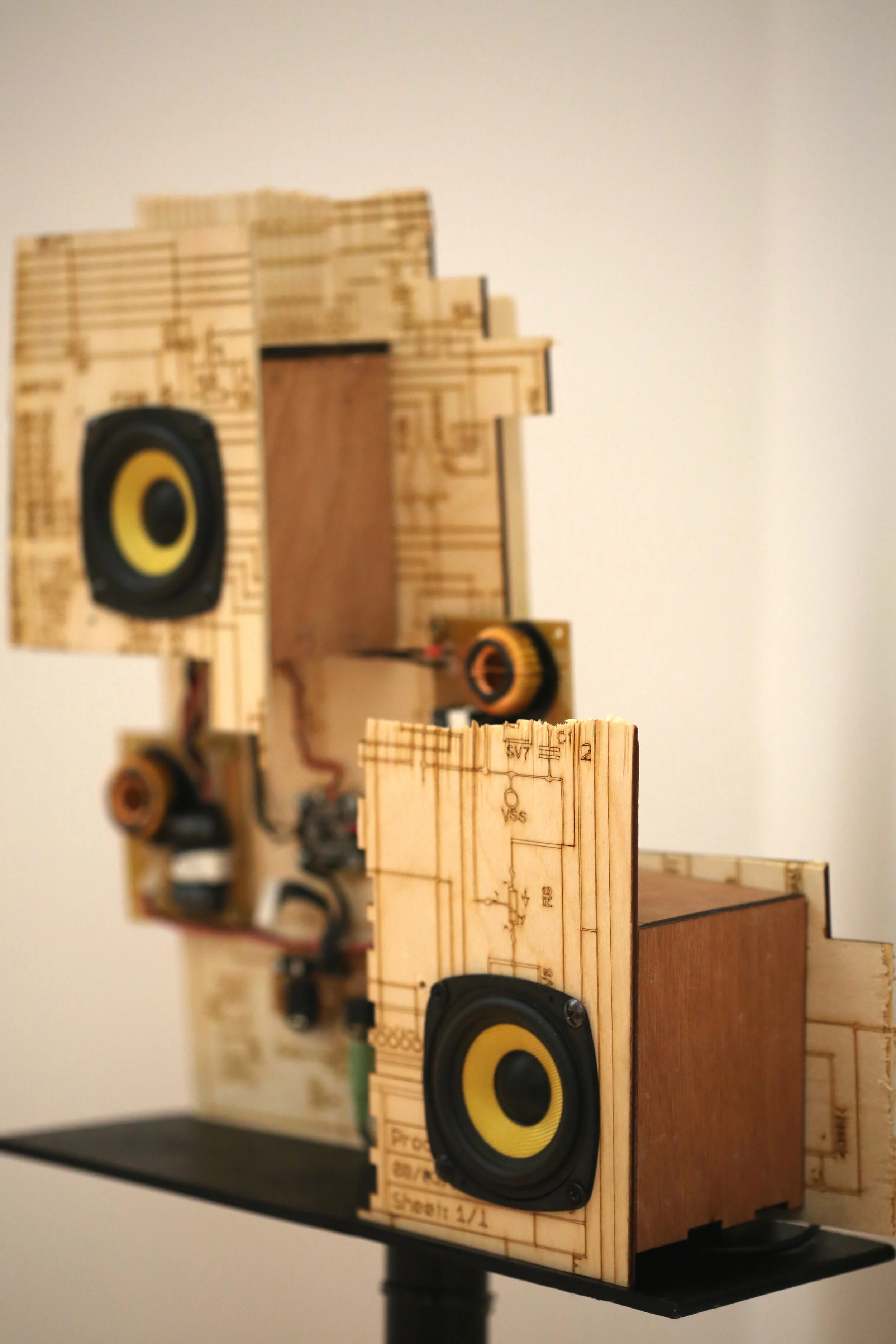 Basic Sound is a set of sculptural speakers and generative sound fragments, created in response to/composed from recordings of a large steel sculpture and the process of its fabrication by Harriet Sutcliffe (Hatton Gallery 2018).